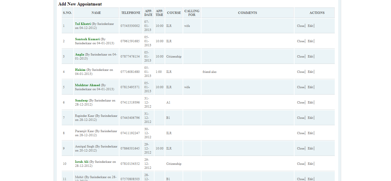 Enquiry Chaseup System where by staff can see the enquries and book appointments, chase enquiries or schedule an interviews can be achieved.
