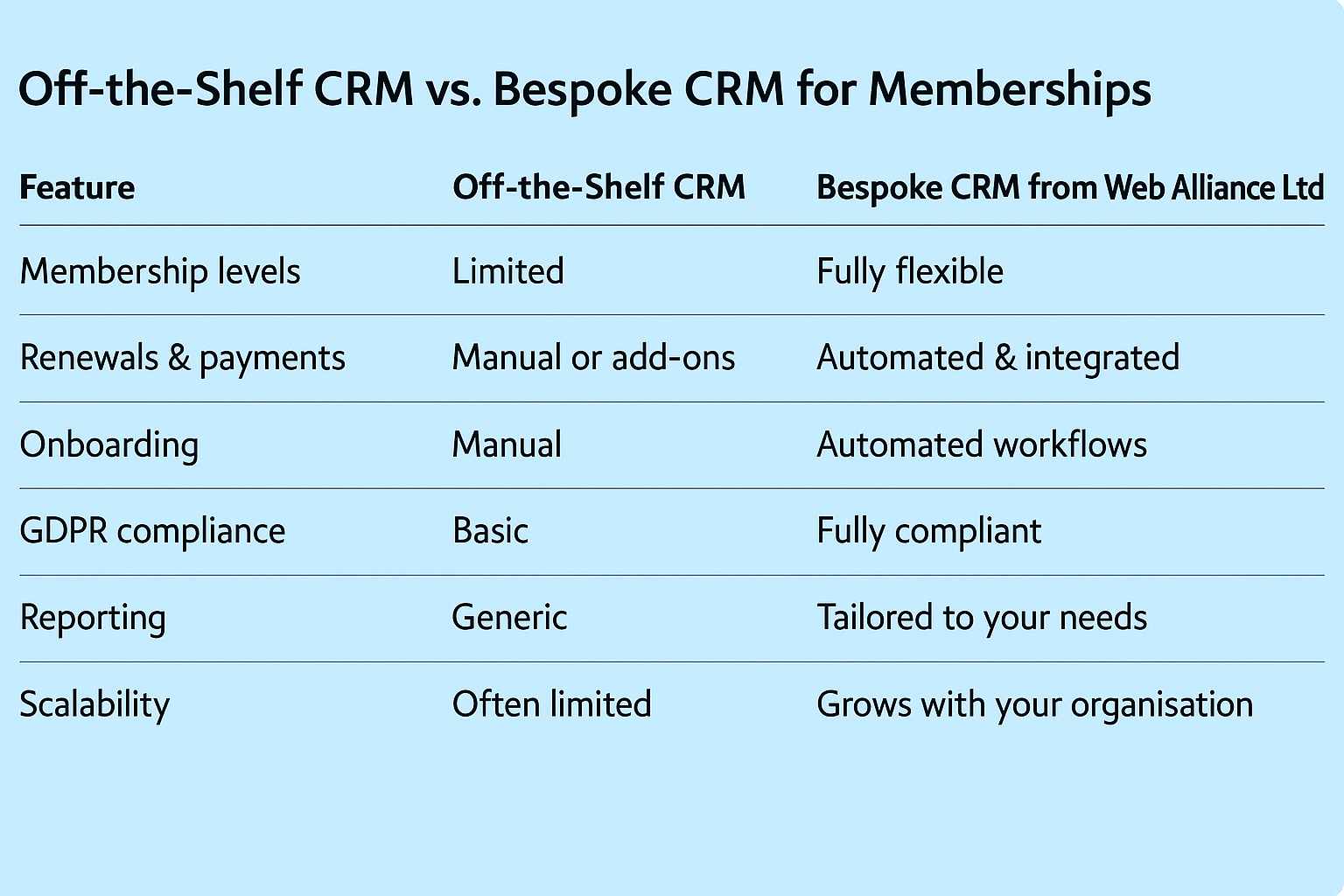 That’s the difference a bespoke membership CRM can make. And it’s why more UK organisations are moving away from generic CRMs and building something that fits their needs.